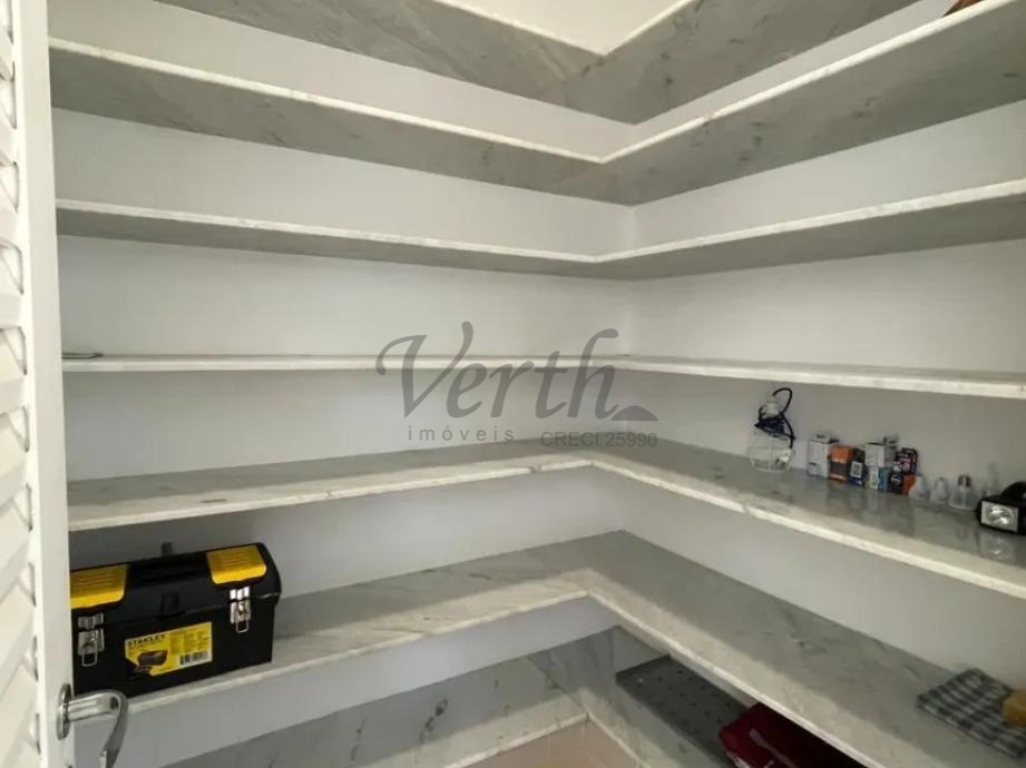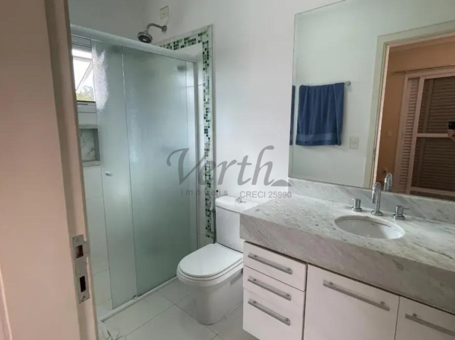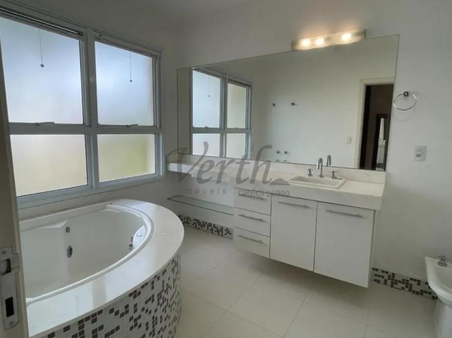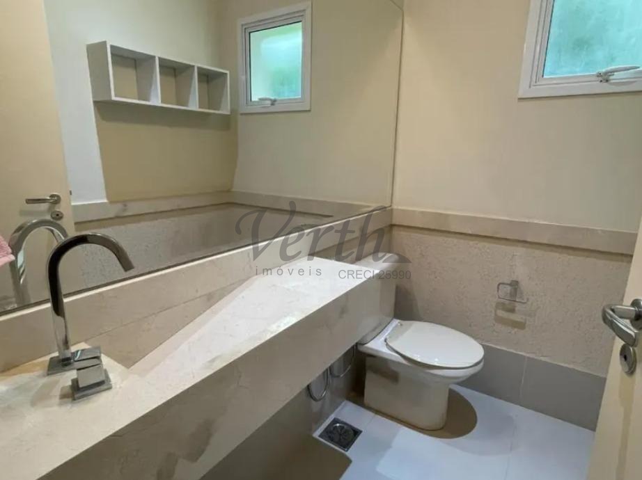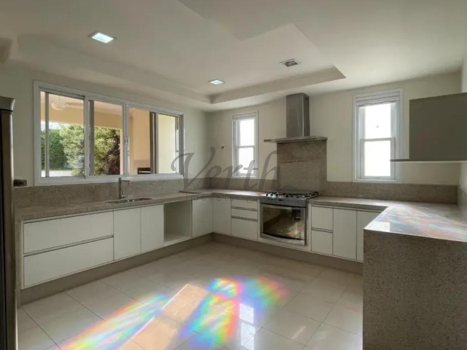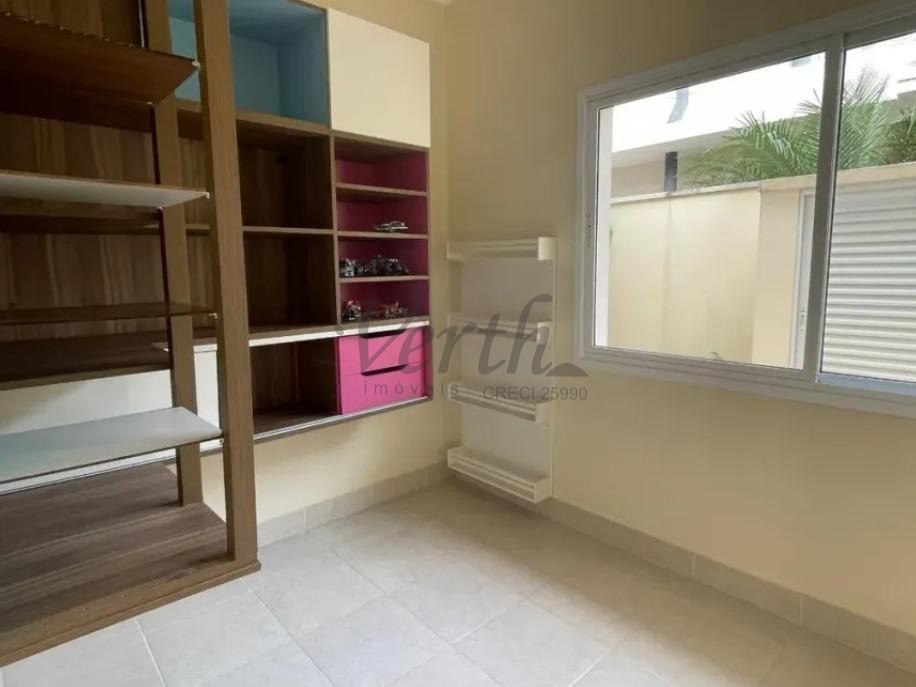 O imóvel dispõe de 4 suítes, garantindo privacidade, além de 6 banheiros no total. Conta ainda com escritório, cozinha com armários planejados, closet, depósito e área de serviço independente.