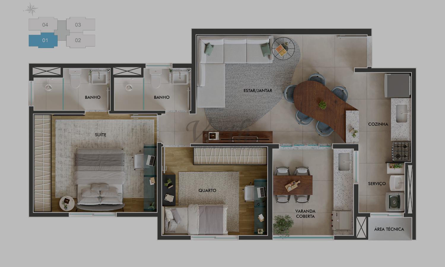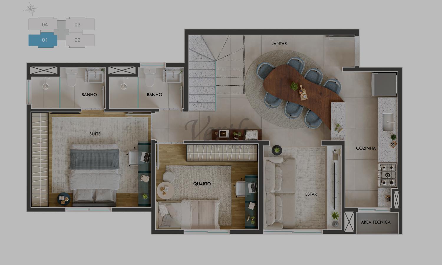 2, 3 dorm.1 suíte(s)1 banheiro(s)