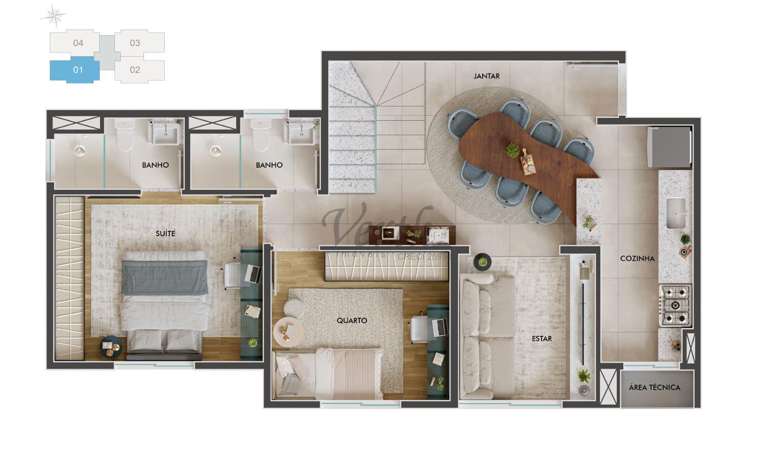 2 dorm.1 suíte(s)1 banheiro(s)