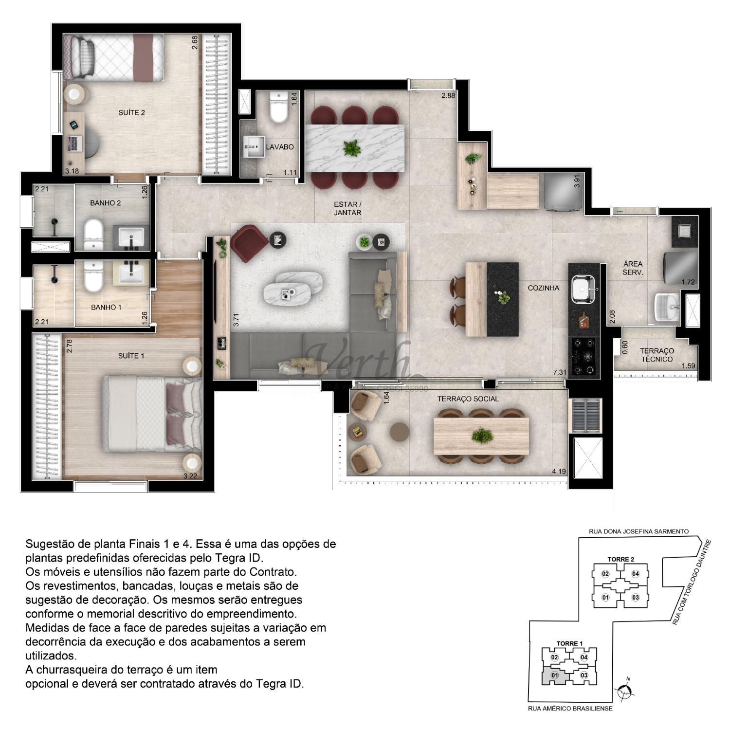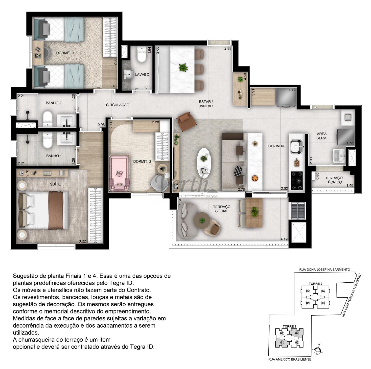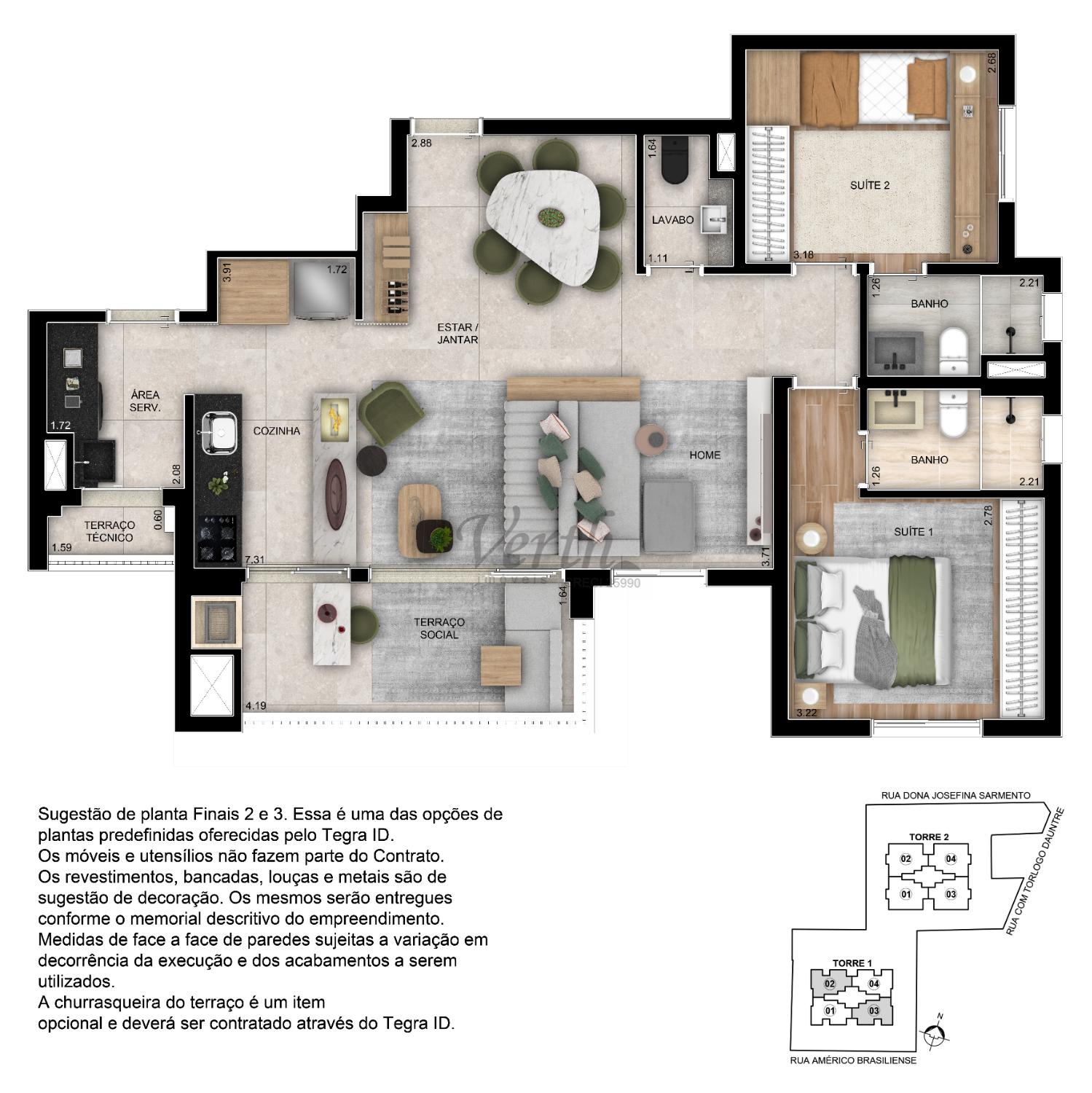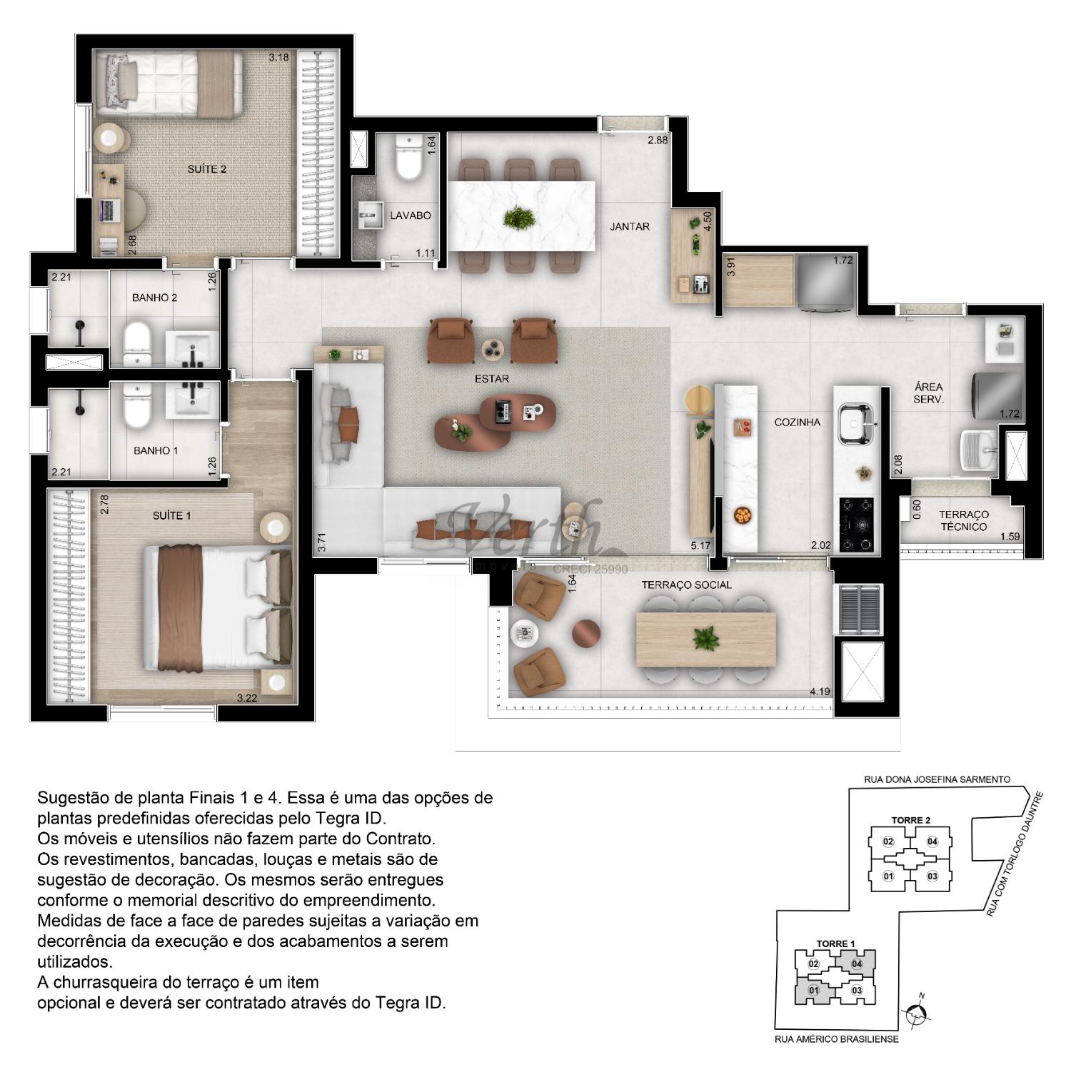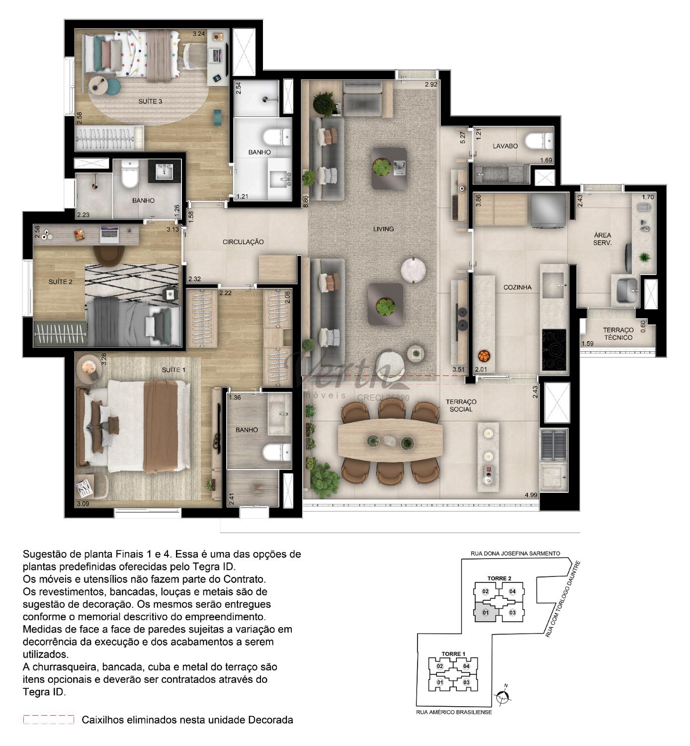 3 dorm.2, 3 suíte(s)1, 2 banheiro(s)