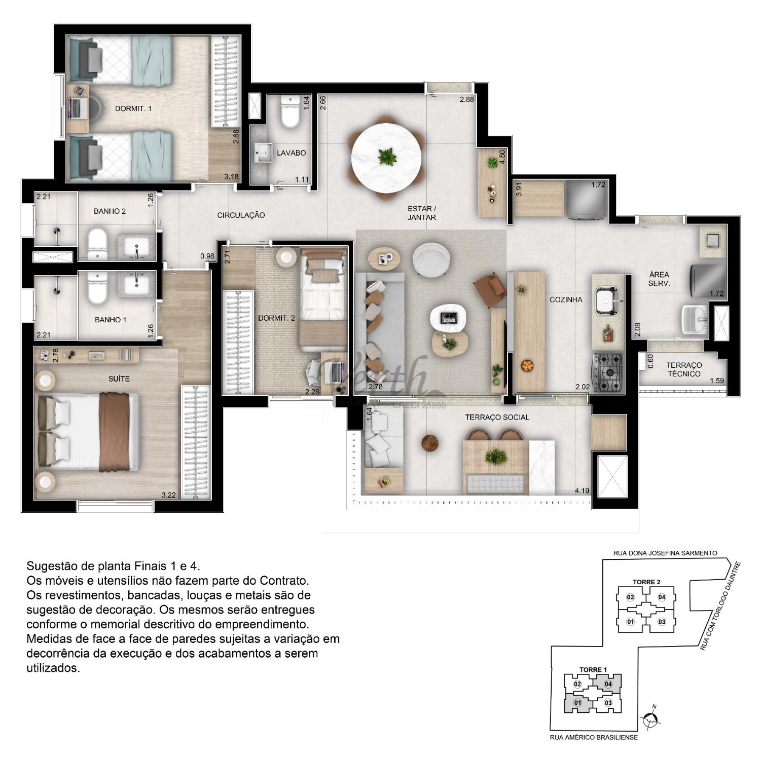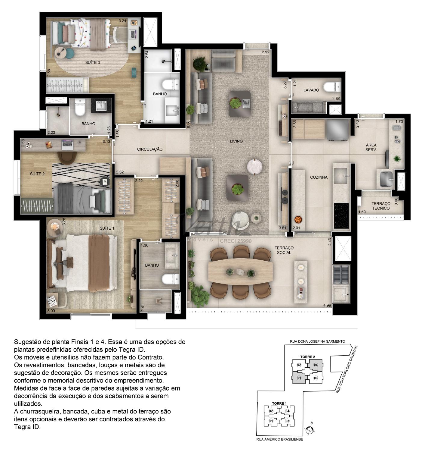 3 dorm.3 suíte(s)1 banheiro(s)